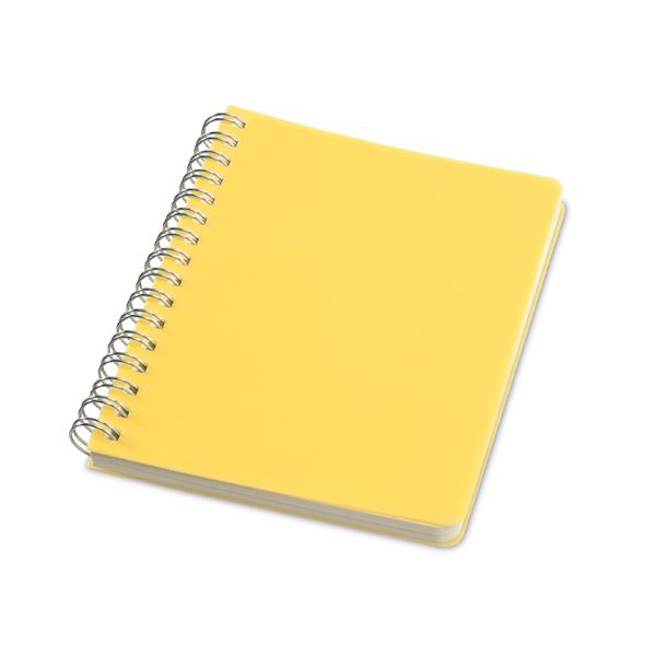 Caderno. PP. Com 64 folhas pautadas cor creme. 103 x 140 mm