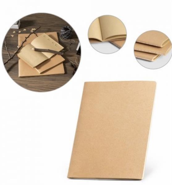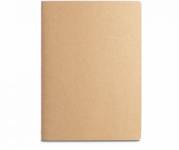 Caderno A4 com capa em cartão (250 g/m²) e cantos redondos. Contém 40 folhas não pautadas, costuradas, em papel reciclado proveniente de gestão florestal sustentável. 210 x 300 mm