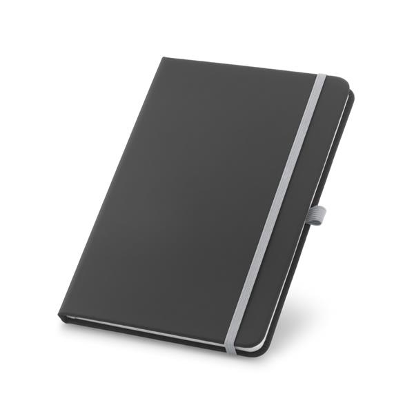 Caderno capa dura. C. sintético. Com porta esferográfica e 80 folhas não pautadas. 90 x 140 mm