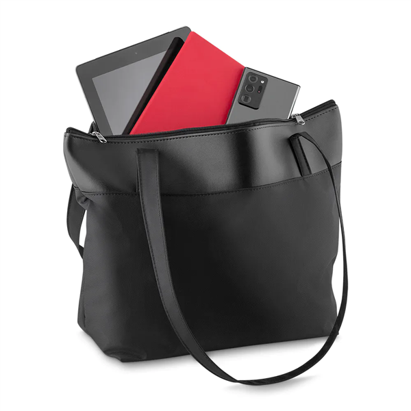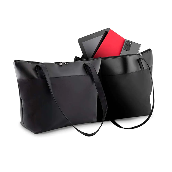 Bolsa em nylon 420 e detalhes em couro sintético preto com alça de ombro. Gravação frontal na opções: serigrafia e plaquinha.