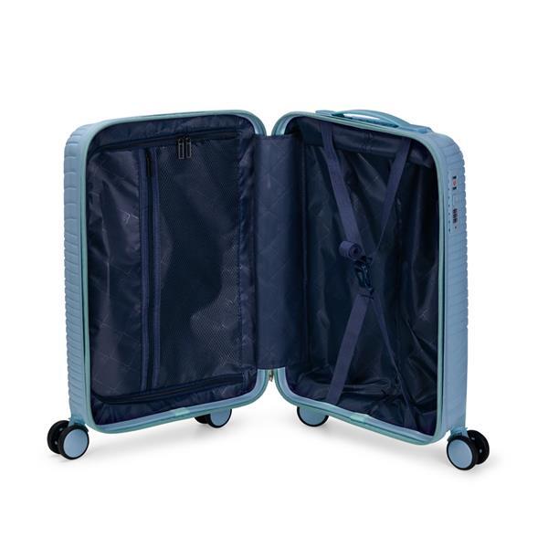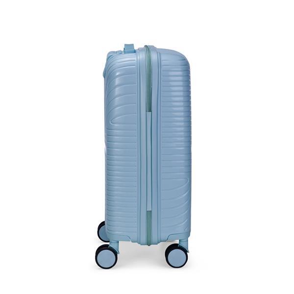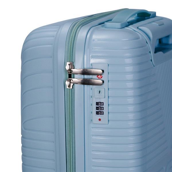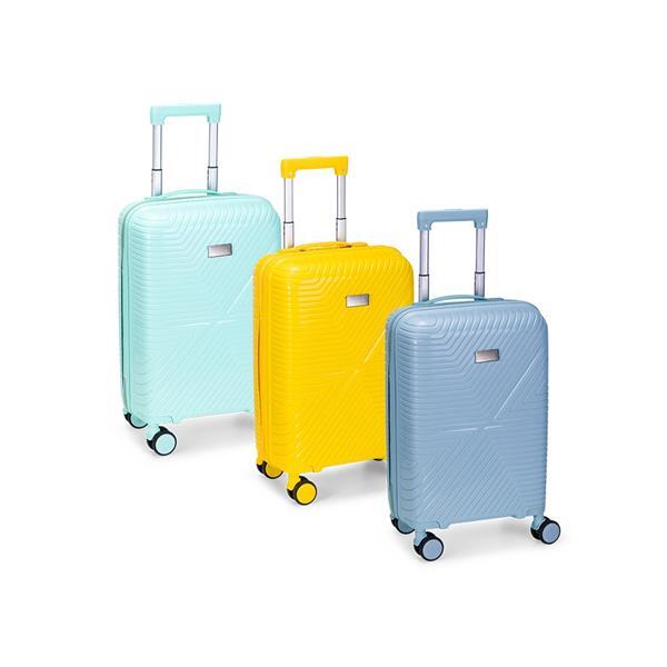 Mala de viagem em plástico resistente, fechamento em zíper e capacidade para até 30 litros. Possui dimensões compatíveis com o padrão da ANAC, compartimento interno com fechamento em zíper e bolso superior em tela de malha, além de cinta compressora no lado oposto para organização de objetos. Conta ainda com alça de mão, quatro rodinhas com giro em 360 graus, puxador com ajuste de nível e alça plástica, além de cadeado numérico TSA. Acompanha placa em metal para personalização.