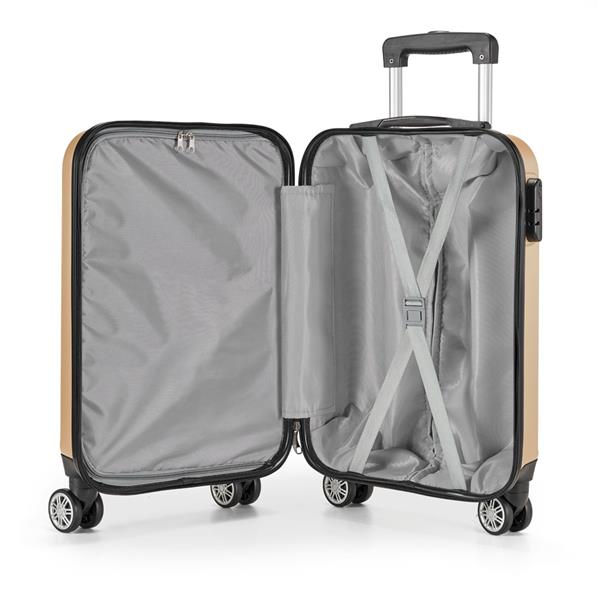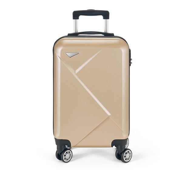 Mala de viagem executivo em ABS com interior forrado, com divisória. Fecho de segurança com senha na lateral, 4 rodas duplas giratórias, pega extensível em metal, com mola (altura pega estendida até 530 mm) e placa metálica removível, para fácil gravação. A mala tem capacidade até 34 L e peso de 2,50 kg. 345 x 540 x 220 mm - Placa: 60 x 20 mm