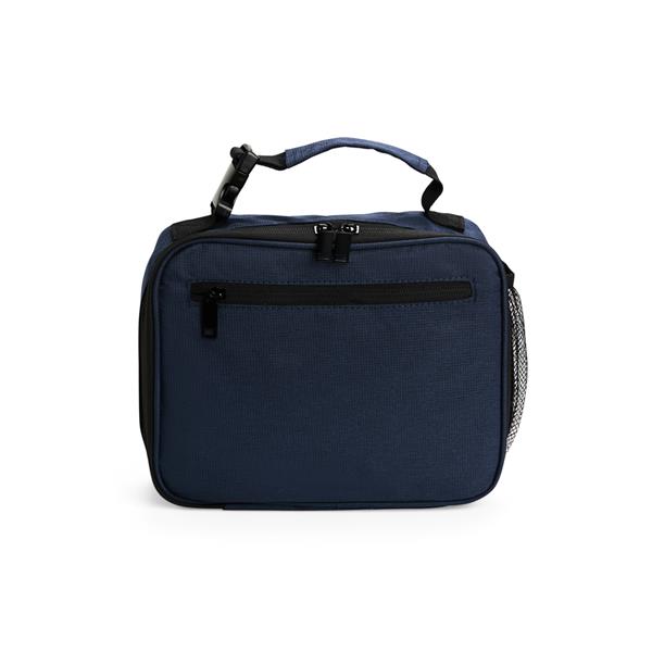 Bolsa térmica em poliéster impermeável com fechamento em zíper e capacidade de até 4 litros. Possui revestimento térmico interno em PEVA atóxico e compartimento em tela de nylon. Apresenta bolso frontal com zíper e bolso telado com elástico, além de alça de mão com engate rápido.