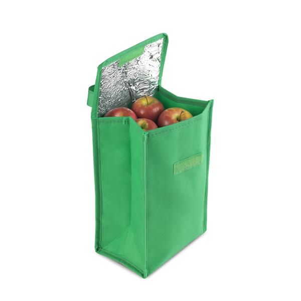 Bolsa térmica em TNT com 80g/m², interior costurado revestido em algodão e folha de alumínio de 2mm Peso do Produto: 0,031kgs Dimensão do Produto: 28x17x10cm
