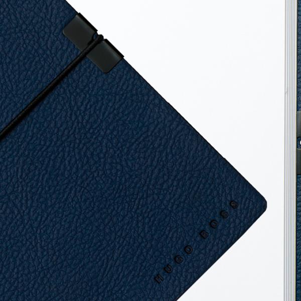 MARCA: HUGO BOSS Caderno A6. Blue. Coleção Storyline. Com 80 folhas não pautadas. 110 x 150 x 16 mm