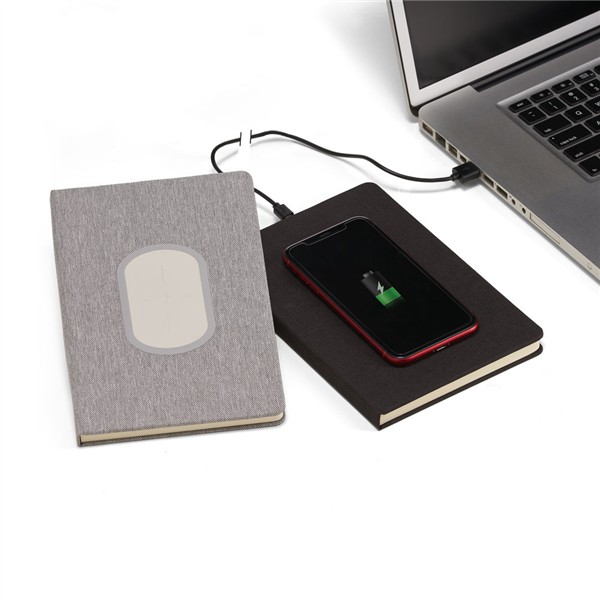 Caderno de anotações com carregador por indução, cabo usb, capa dura em material sintetico, miolo 80 folhas pautadas na cor bege. Nas compras a partir de 10 peças, seguirá como cortesia lapiseiras de sua escolha para compor os kits. Dimensão do Produto: 21,3x 14,3 x 1,5cm Peso do Produto: 0,370kg Embalagem: 20 pçs Dimensão da Caixa: 39x16x25.5cm Peso da Caixa: 7,7 kg