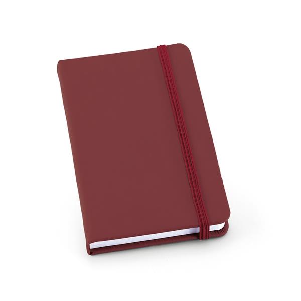 Caderno de bolso com 80 folhas não pautadas, capa dura em c. sintético, fita separadora e elástico. 90 x 140 mm