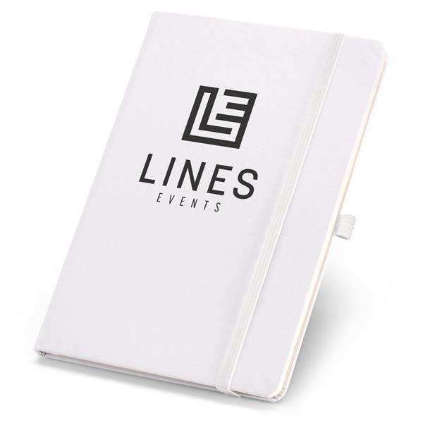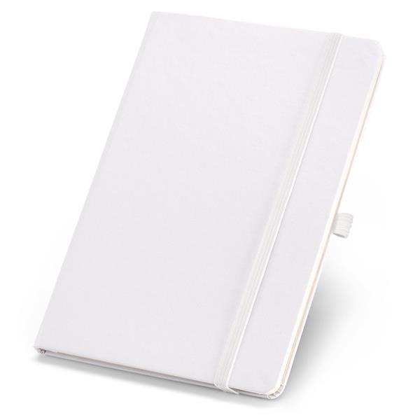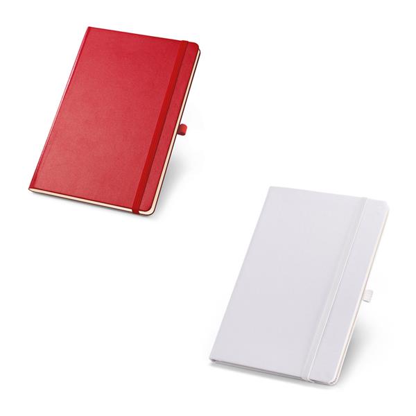 Caderno A6 com capa dura. Contém suporte para esferográfica, bolso interior e 80 folhas não pautadas em cor marfim. 97 x 145 mm