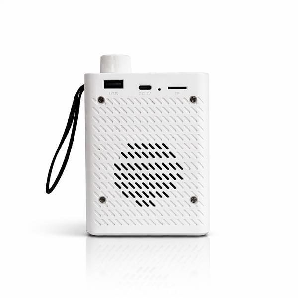 Caixa de som multimídia com estrutura em plástico e iluminação RGB ajustável na parte frontal. Possui conexão Bluetooth 5.4 e rádio FM, além de entradas USB-A e TF (micro SD) para a reprodução de arquivos MP3 via pen drives e cartões micro SD. Conta ainda com painel de botões na parte superior, base antiderrapante, alça lateral em nylon e entrada USB-C para carregamento do aparelho. Acompanha cabo USB-C. Altura : 11,5 cm Largura : 8,5 cm Profundidade : 6,7 cm Peso aproximado (g): 270