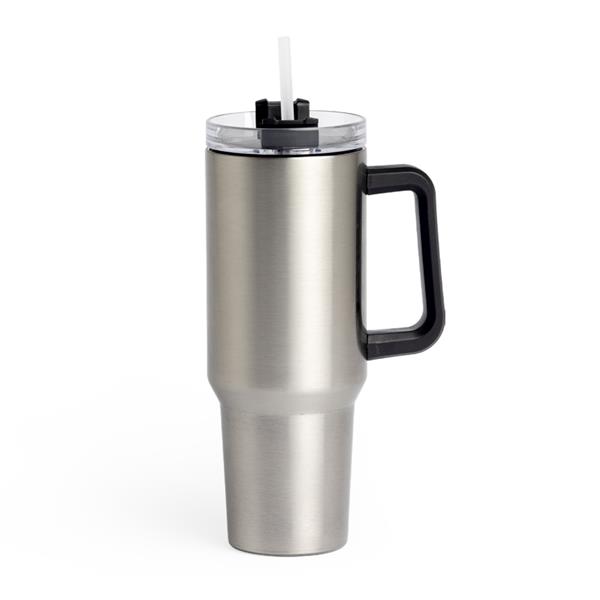 Caneca térmica com capacidade de 1,2 litros feita em inox 304 com parede dupla, contém tampa acrílica rosqueável com acesso para canudo e pegador plástico. Acompanha canudo plástico. Altura : 26,9 cm Largura : 14,9 cm Circunferência : 31,3 cm Comprimento : Canudo 30,8 cm Peso aproximado (g): 539