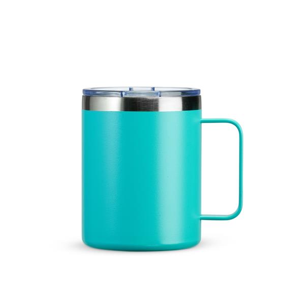 Caneca térmica em inox livre de BPA, com pintura eletrostática e capacidade de até 320 ml. Conta com estrutura de parede dupla e vedação a vácuo, o que ajuda a conservar a temperatura de bebidas por mais tempo. Possui tampa plástica com proteção para o bocal.
