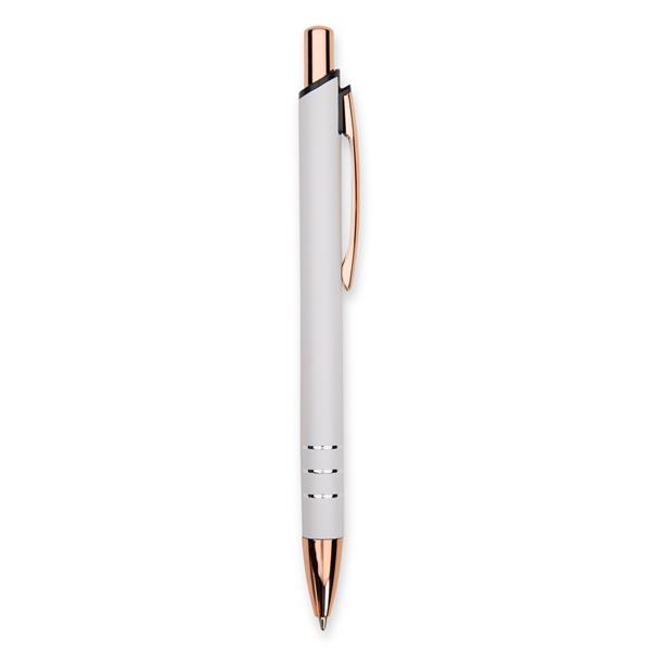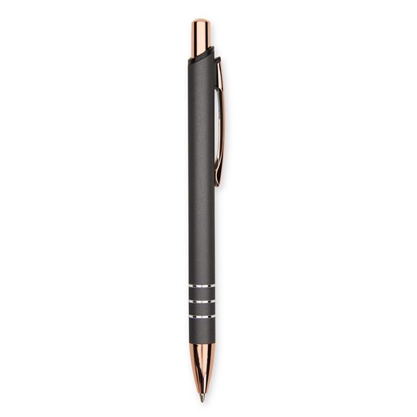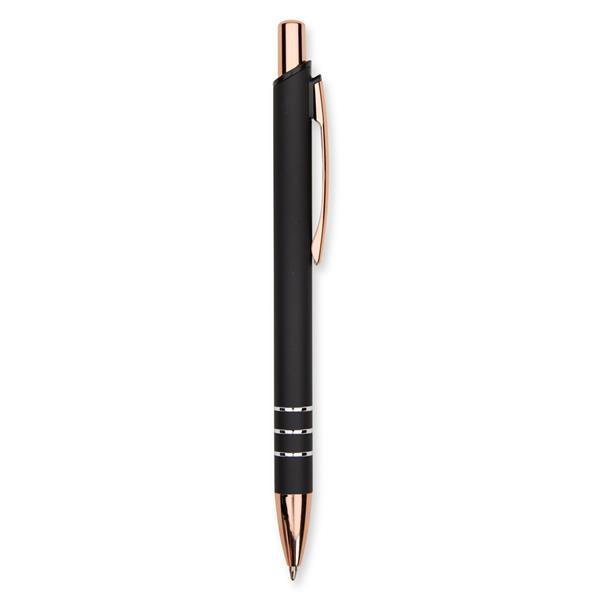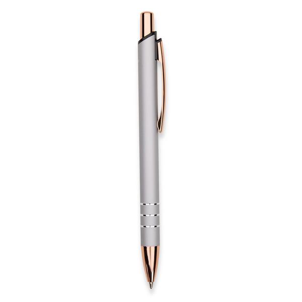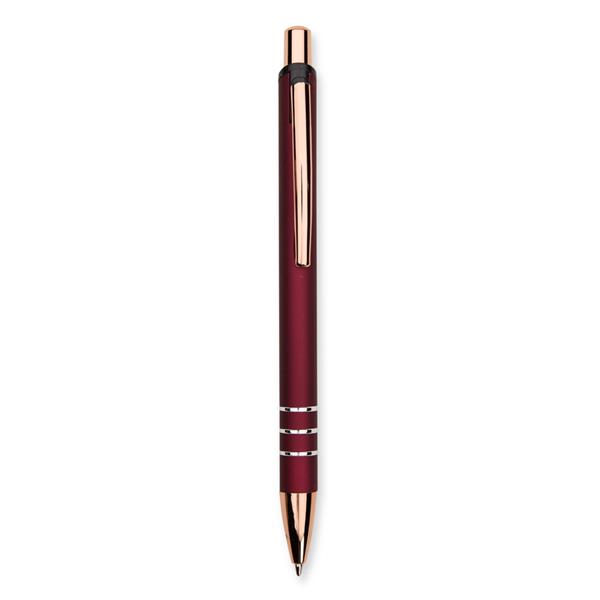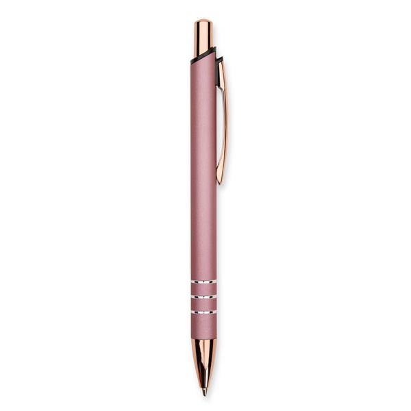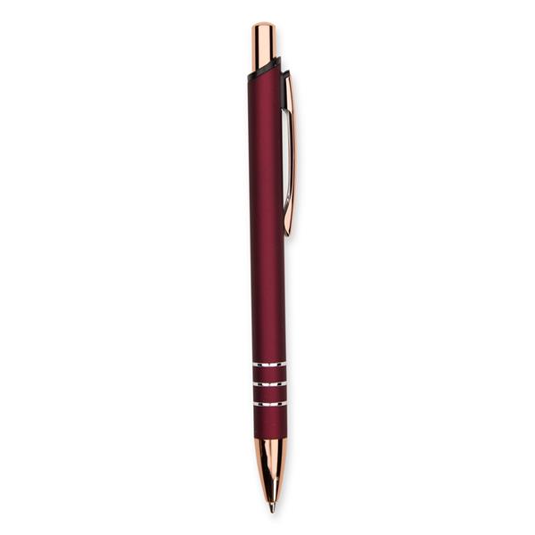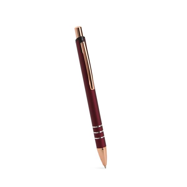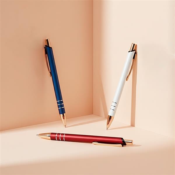 Caneta metálica com acionamento por clique e carga esferográfica azul de 1,0mm, oferecendo uma pegada leve para uma escrita mais precisa. Largura : 1,5 cm Comprimento : 14,2 cm Peso aproximado (g): 16