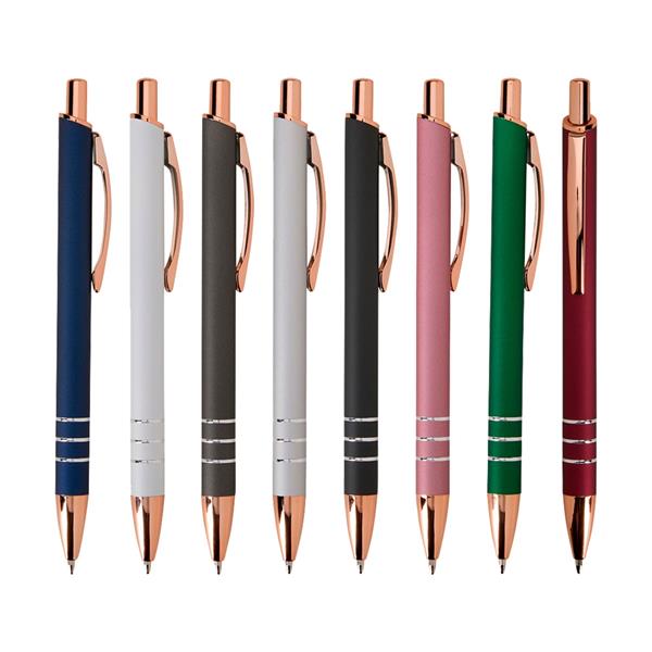 Caneta metálica com acionamento por clique e carga esferográfica azul de 1.0mm, uma combinação que oferece pegada leve para uma escrita mais precisa. Largura : 1,6 cm Comprimento : 14,1 cm Peso aproximado (g): 17