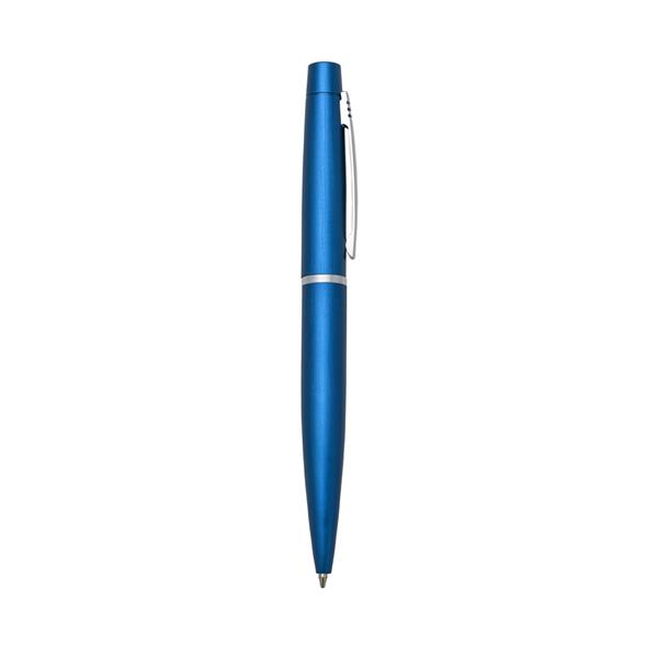 Caneta metal inteira colorida com detalhes prata. Pintura fosca, possui clip metal com três traços superior e anel prata central. Aciona por giro Largura : 1,5 cm Comprimento : 13,5 cm Medidas aproximadas para gravação (CxL): 4 cm x 1 cm Peso aproximado (g): 21