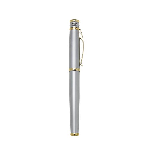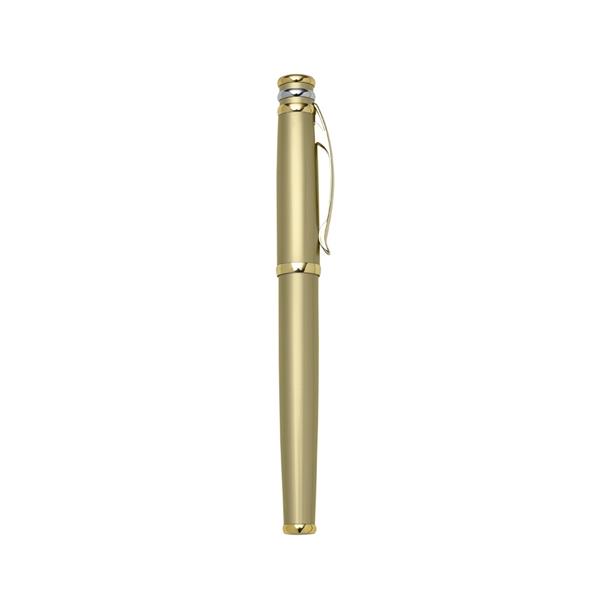 caneta de metal roller com tampa e detalhes dourados