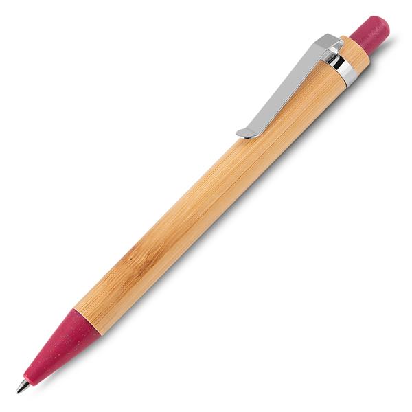 Conjunto caneta de bambu com estojo de papel. Carga esferográfica azul e acionamento por clique. Altura : 13,5 cm Largura : 1,6 cm Medidas aproximadas para gravação (CxL): 8,5 cm x 1 cm Peso aproximado (g): 13
