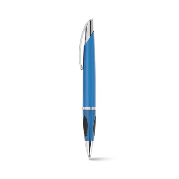 Esferográfica. Metal. Com grip. ø14 x 140 mm
