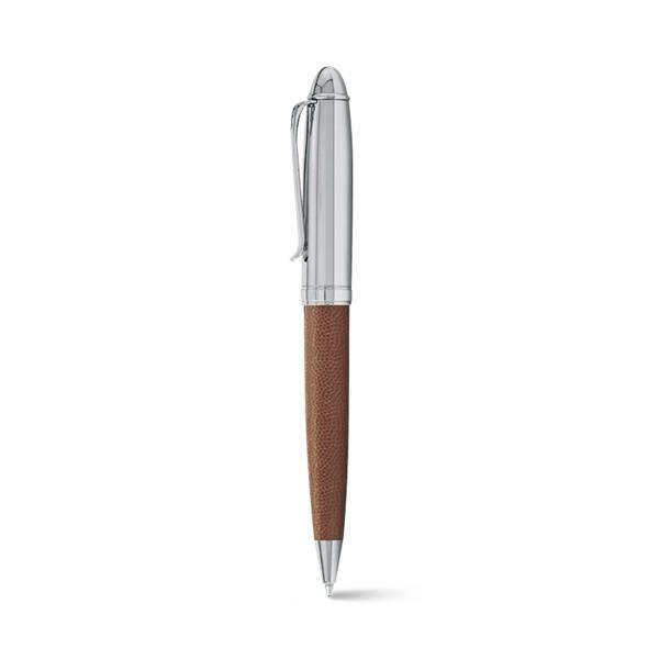 Esferográfica. Metal e couro. ø16 x 141 mm