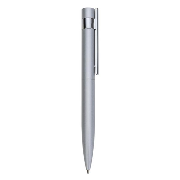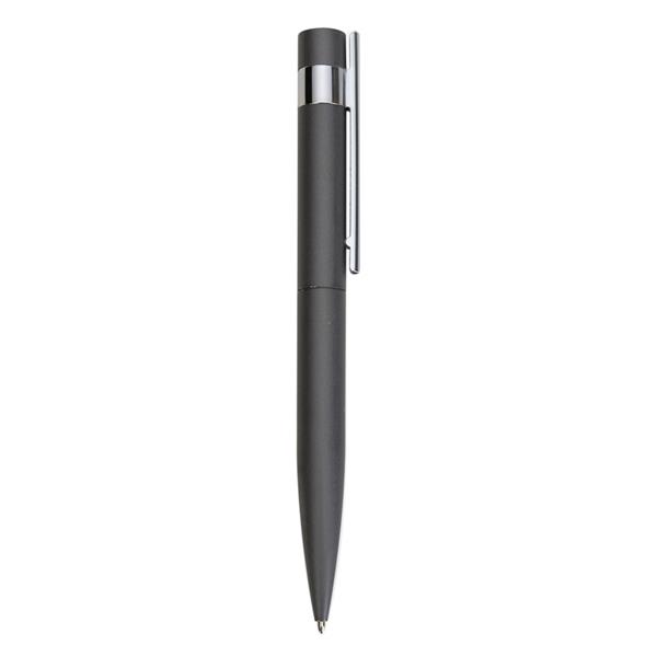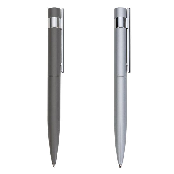 Caneta metálica com carga esferográfica azul e acionamento por rotação. PEDIDO MÚLTIPLO DE 50 PEÇAS.