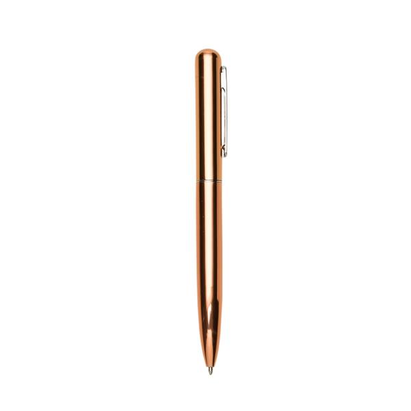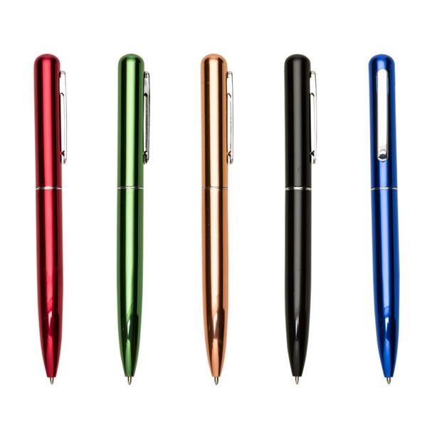 Caneta metal brilhante inteira colorida com detalhes prata. Clip metal e abaixo anel prata, aciona por giro Medidas aproximadas para gravação (CxL): 4 cm x 0,8 cm Tamanho total aproximado (CxL): 13,8 cm x 1,4 cm Peso aproximado (g): 20