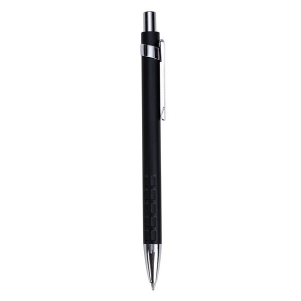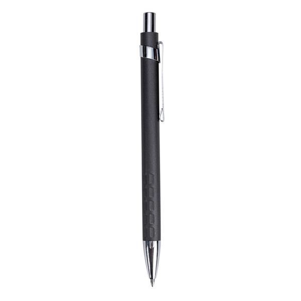 Caneta metal com detalhes retangulares na parte inferior em relevo. Corpo colorido com pintura fosca, acionador e clip prata espelhado, aciona por clique Medidas aproximadas para gravação (CxL): 4 cm x 0,7 cm Tamanho total aproximado (CxL): 14,1 cm x 1,2 cm Peso aproximado (g): 17