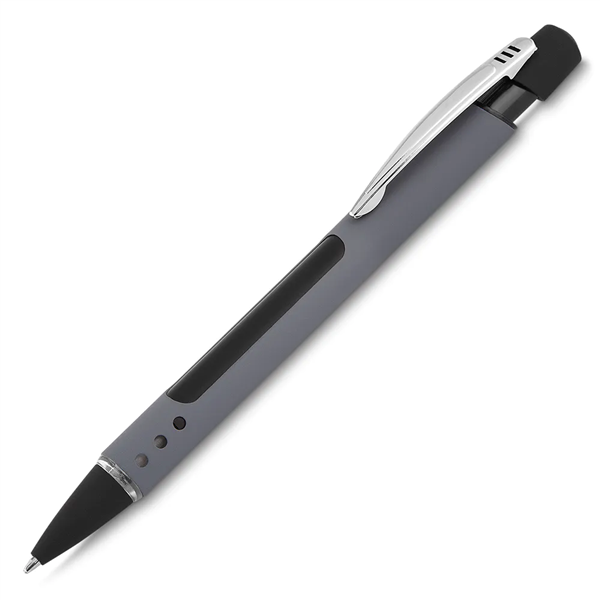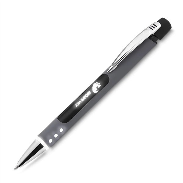 Caneta metal esferográfica, com iluminação LED.