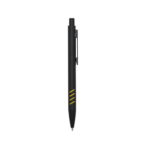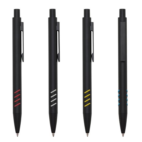 caneta metal preta fosca com detalhe colorido