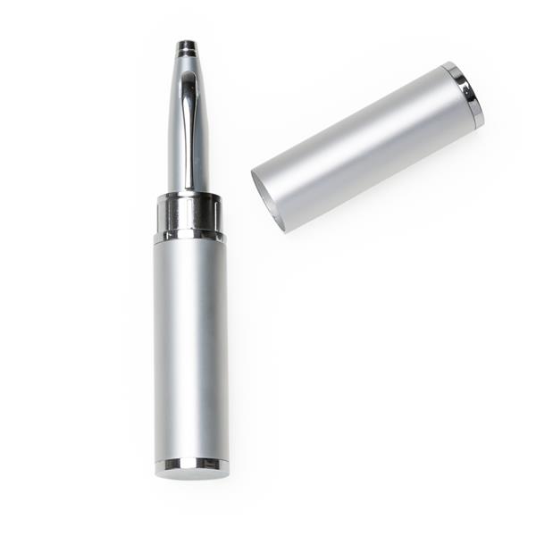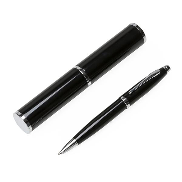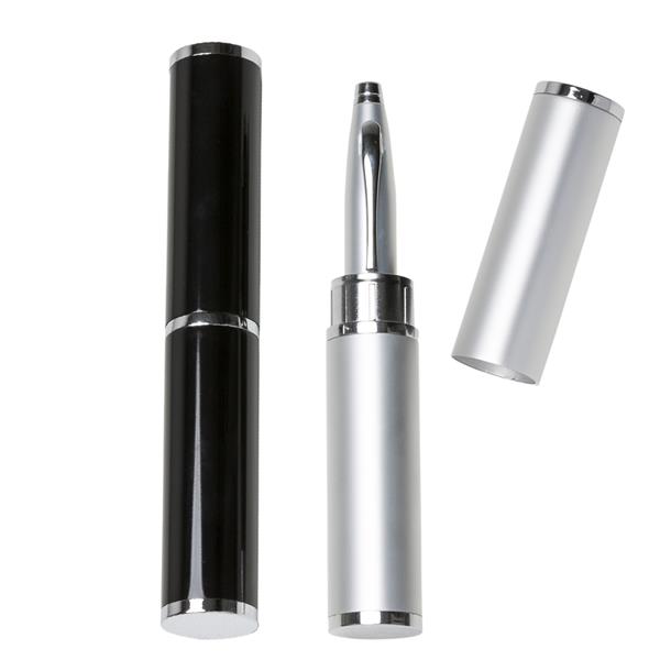 Caneta metal com estojo tubo. Caneta inteira colorida com detalhes prata, possui anel em relevo na parte superior e anel central, esferográfica aciona por giro. Estojo tubo de alumínio revestido com espuma interna, extremidades prata brilhante e anel central Medidas aproximadas para gravação (CxL): Tubo 6,6 cm x 2 cm – Caneta 3,5 cm x 1 cm Tamanho total aproximado (CxL): Tubo 14,9 cm x 2,2 cm – Caneta 13,5 cm x 1,5 cm Peso aproximado (g): 40