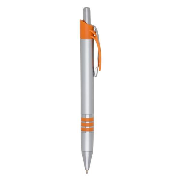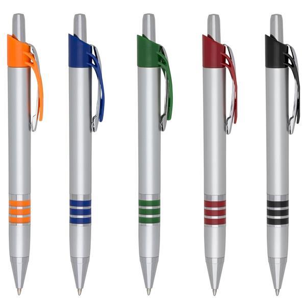 Caneta personalizada com detalhes coloridos no clipe e na base faz deste brinde personalizado um presente especial.