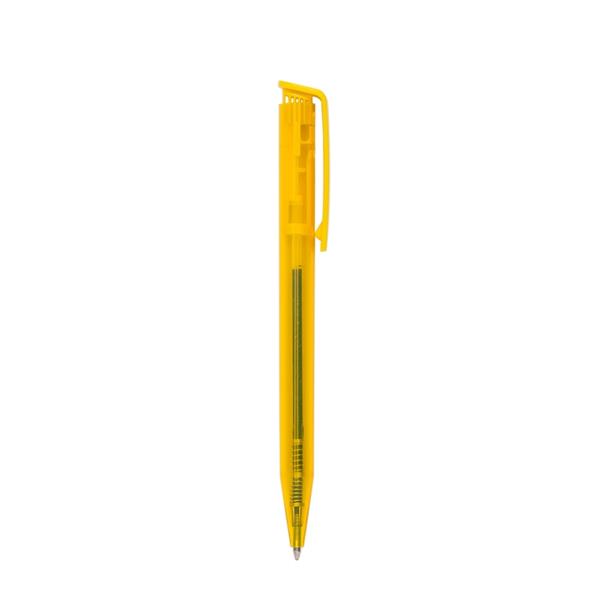 Caneta plástica translúcida inteira colorida. Clip plástico leitoso, aciona por clique Medidas aproximadas para gravação (CxL): 4,5 cm x 0,7 cm - Clip 4 cm x 0,8 cm Tamanho total aproximado (CxL): 14,4 cm x 1,6 cm Peso aproximado (g): 8