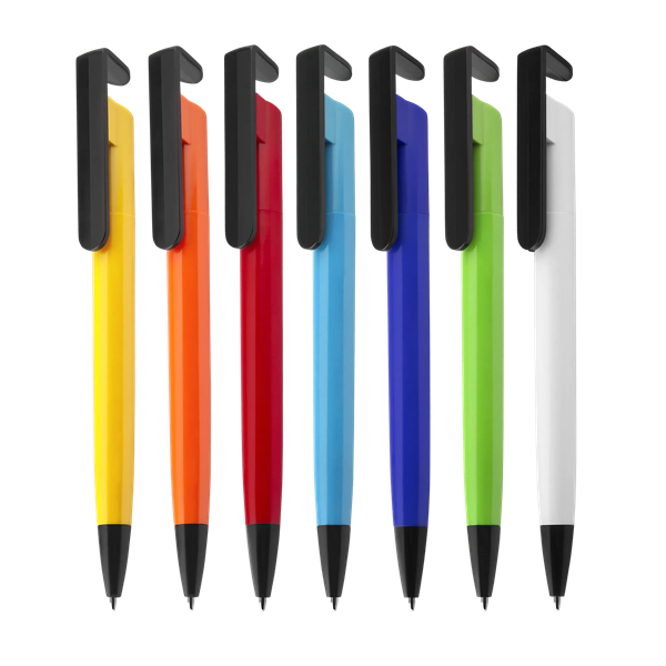 Caneta personalizada com suporte para celular é um brinde personalizado diferenciado.
