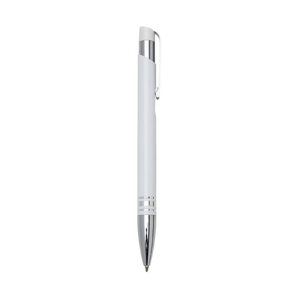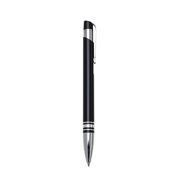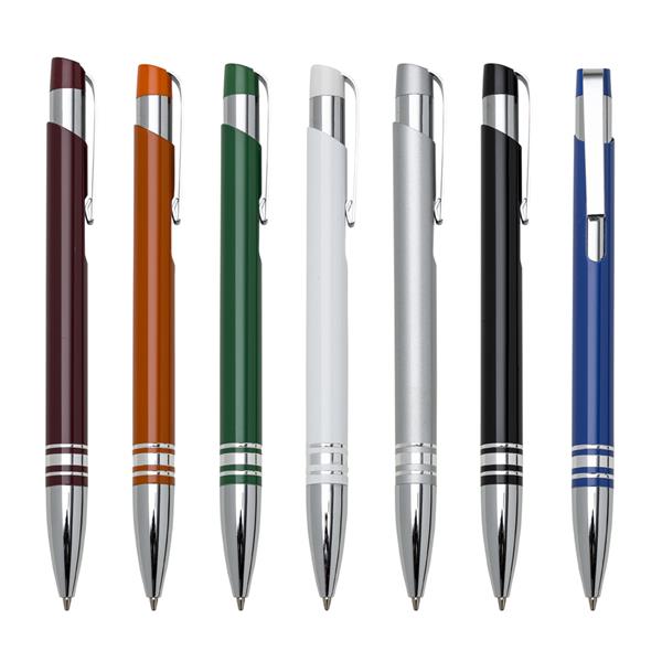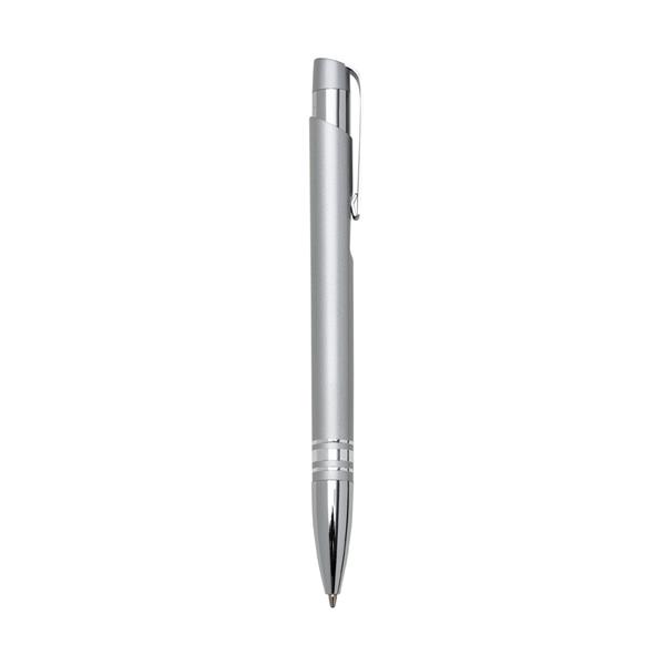 Caneta semimetálica com carga esferográfica azul e acionamento por clique. Altura : 137cm Largura : 14cm Medidas aproximadas para gravação (CxL): 3,2 cm x 0,8 cm Tamanho total aproximado (CxL): 13,7 cm x 1,4 cm Peso aproximado (g): 18