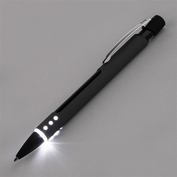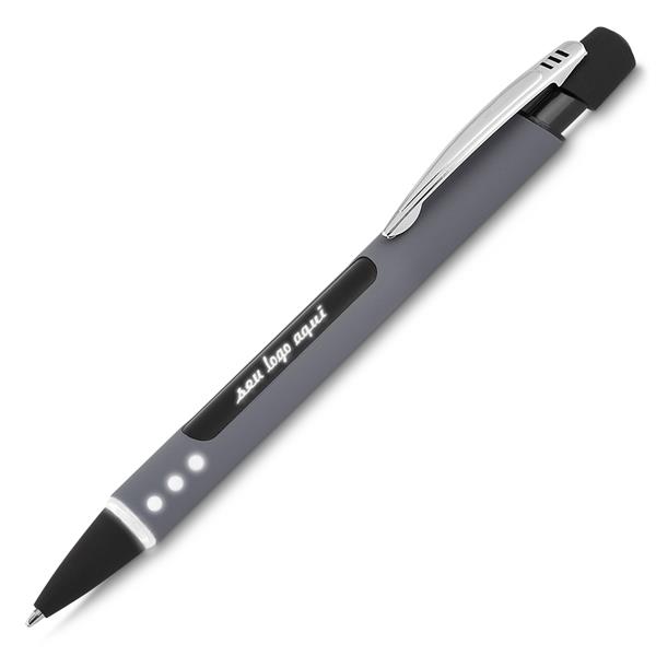 Caneta semimetálica com led, carda esferográfica azul. Acionamento por clique. Largura : 1,7 cm Comprimento : 14,8 cm Medidas aproximadas para gravação (CxL): 0,8 cm x 4,3 cm Peso aproximado (g): 13
