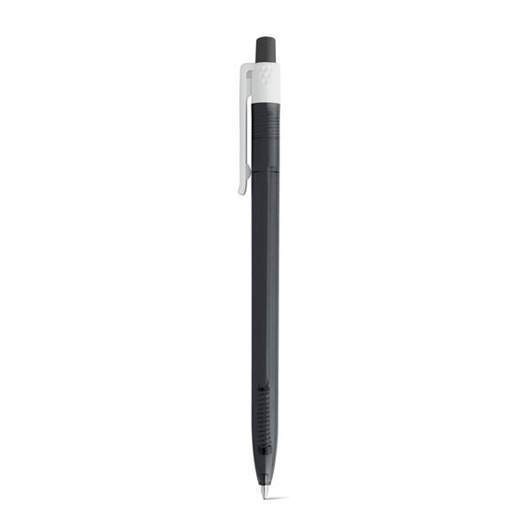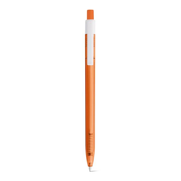 Esferográfica. ABS. Acabamento translúcido. Clipe branco. 1,5km de escrita. ø9 x 140 mm