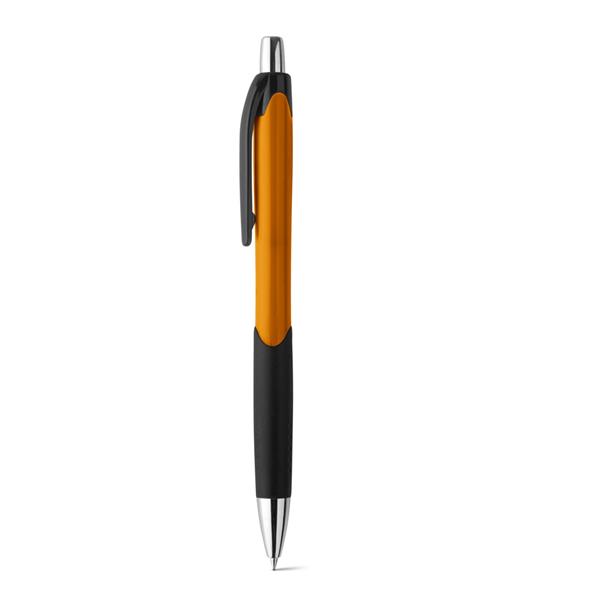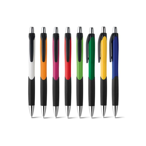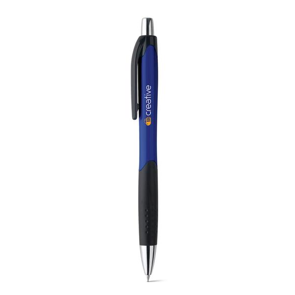 Esferográfica. ABS. Com grip. Acabamento brilhante. Ponteira cromada. 1,5km de escrita. ø10 x 138 mm