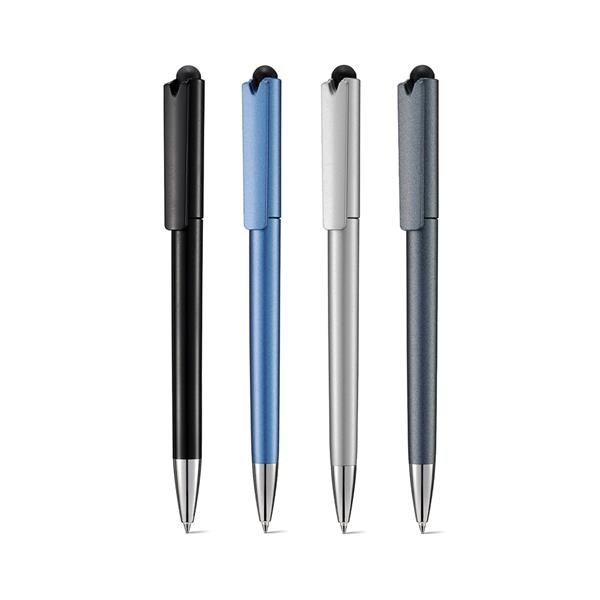 Esferográfica. Acabamento metalizado. Ponteira de metal e touch. Tinta Dokumental®. 2,5km de escrita. Esferográfica cor 103: escrita preta. Esferográficas restantes cores: escrita azul. ø9 x 145 mm
