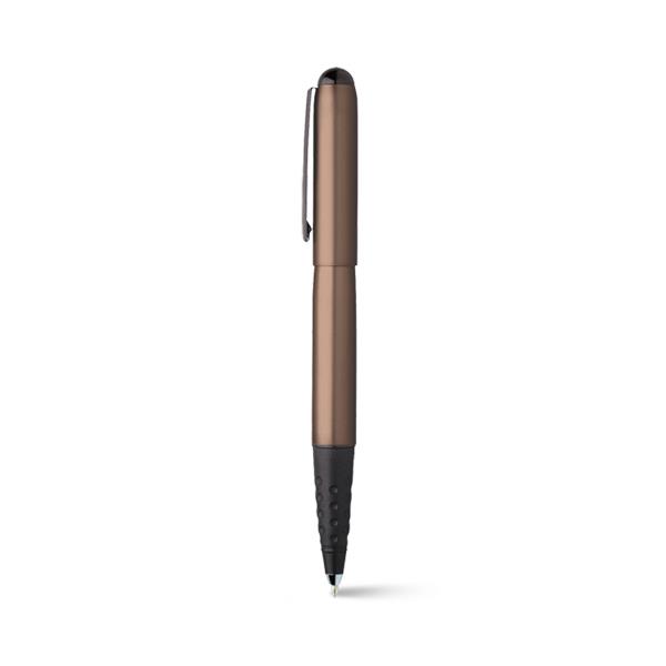Esferográfica. Metal. Com grip. ø13 x 133 mm
