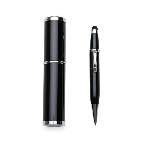 Mini caneta semimetal touch em tubo plástico. Tubo colorido com parte interna revestido de espuma, possui com parte inferior e superior de detalhe prata com anel central. Caneta colorida com mini clip metálico prata, dois anéis superiores e borracha touch. Aciona por giro Medidas aproximadas para gravação (CxL): Estojo 6,7 cm x 2 cm – Caneta 3,5 cm x 1 cm Tamanho total aproximado (CxL): Estojo 13,4 cm x 2,7 cm x 8,6 cm – Caneta 12,3 cm x 1,9 cm Peso aproximado (g): 42