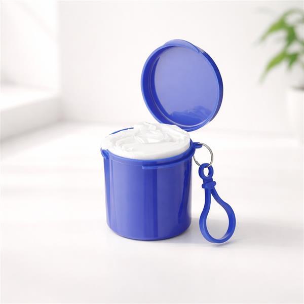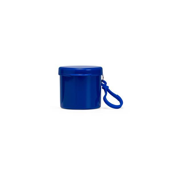 Capa de chuva descartável em plástico. Acompanha embalagem plástica em formato cilíndrico com mosquetão.