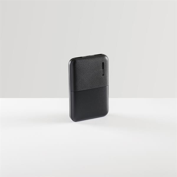 Bateria portátil em ABS de design elegante e inovador pensada de forma a ser um objeto intuitivo e facilitador no dia-a-dia. Bateria em polímero de lítio com indicador de carga LED. Possibilita o carregamento de até 2 dispositivos em simultâneo com entrada DC 5V/2.0A e saída DC 5V/1-2.1A. Bateria prática para levar para qualquer lugar com capacidade de 5 000 mAh e potência de carregamento de 5V. Fornecida em caixa presente, com cabo micro USB incluso. 98 x 64 x 14 mm - Caixa: 148 x 144 x 34 mm