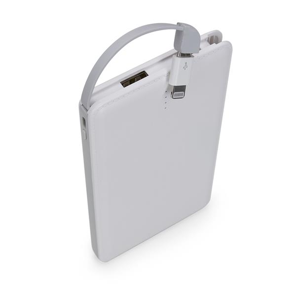 Power bank plástico slim com níveis e adaptador lightning. Material plástico resistente com texturização semelhante à couro sintético, possui botão lateral para ligar e desligamento automático. Possui entrada e saída DC 5V, possui 4 luzes led indicativas de carga. Bateria de 6000mAh. Possui cabo acoplado ao carregador com conector lightning para encaixe e acompanha cabo USB. O carregador deve ser usado com frequência, caso contrário deverá ser carregado a cada 2 meses pelo menos 8 horas para prolongar e manter o bom uso da bateria. Compatível com celulares, iphone, ipad, ipod, tablets, mp3, câmeras dentre outros eletrônicos. Medidas aproximadas para gravação (CxL): 11,7 cm x 6,3 cm Tamanho total aproximado (CxL): 14,9 cm x 7,8 cm x 1,5 cm Peso aproximado (g): 220
