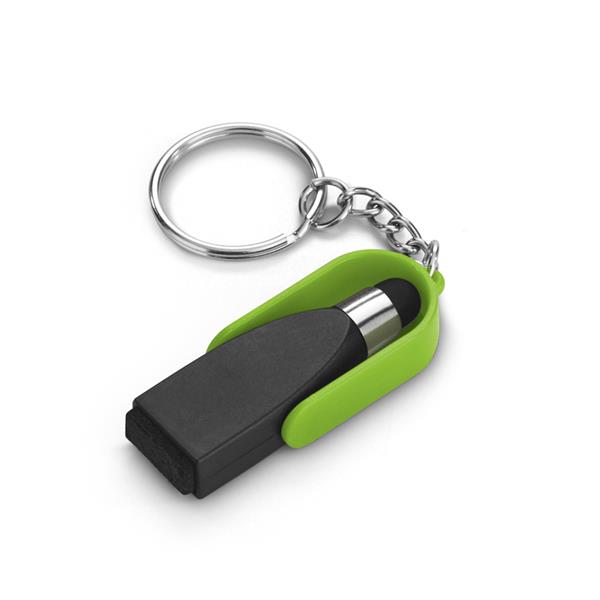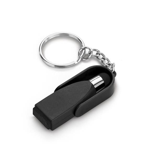 Chaveiro. ABS. Com ponteira touch e limpador de tela. 19 x 55 x 9 mm