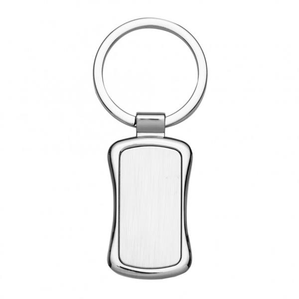 Chaveiro de metal retangular com chapa central, verso liso. Possui bordas arredondadas e laterais encurvadas. Medidas aproximadas para gravação (CxL): 3,6 cm x 1,8 cm Tamanho total aproximado (CxL): 8 cm x 3,4 cm Peso aproximado (g): 21