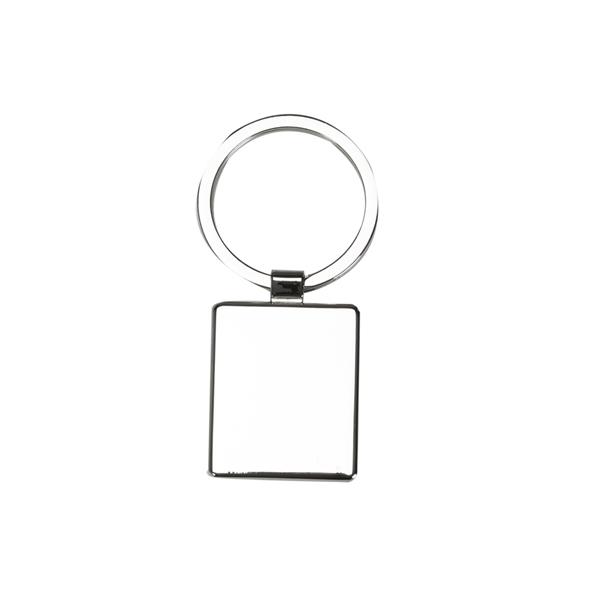 Chaveiro de metal quadrado com chapa central, verso liso. Medidas aproximadas para gravação (CxL): 2,7 cm x 2,2 cm Tamanho total aproximado (CxL): 7,1 cm x 3,5 cm Peso aproximado (g): 26