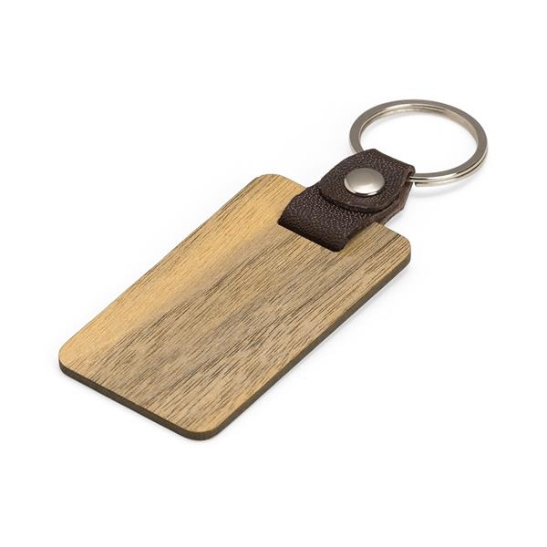 Chaveiro ecológico em madeira clara com alça em couro. Altura : 11,1 cm Largura : 4 cm Medidas aproximadas para gravação (CxL): 5,7 cm x 3,9 cm Peso aproximado (g): 8