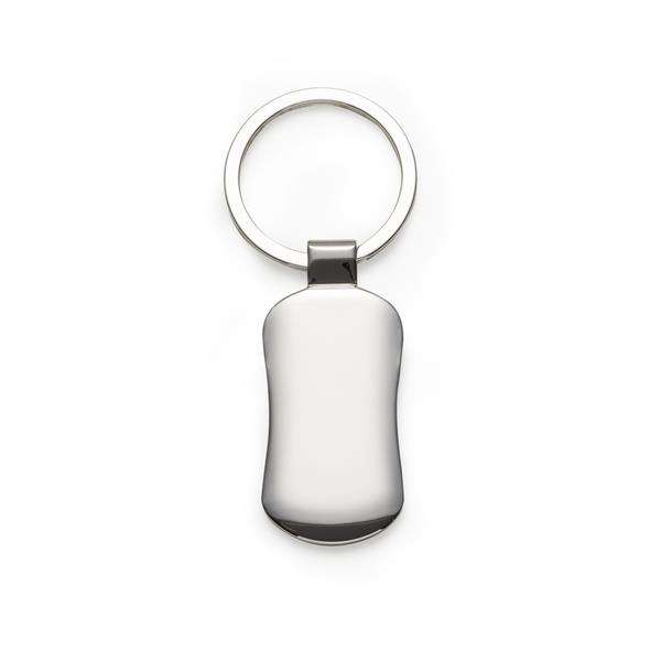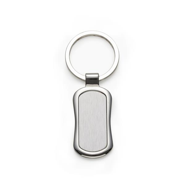 Chaveiro metal retangular com bordar arredondadas. Possui chapa metal central para personalização, verso liso brilhante. Medidas aproximadas para gravação (CxL): 3,9 cm x 1,7 cm Tamanho total aproximado (CxL): 8,5 cm x 3,4 cm Peso aproximado (g): 24