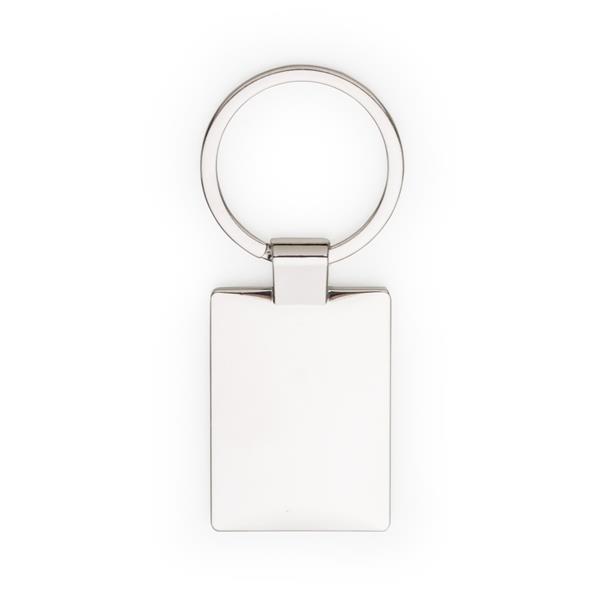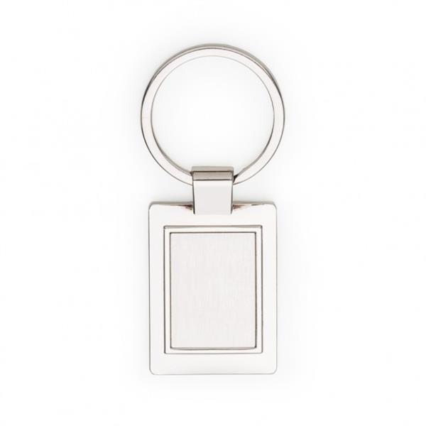 Chaveiro metal retangular com chapa central escovada. Parte traseira metal brilhante liso Medidas aproximadas para gravação (CxL): 2,5 cm x 1,8 cm Tamanho total aproximado (CxL): 7,5 cm x 3,2 cm Peso aproximado (g): 25