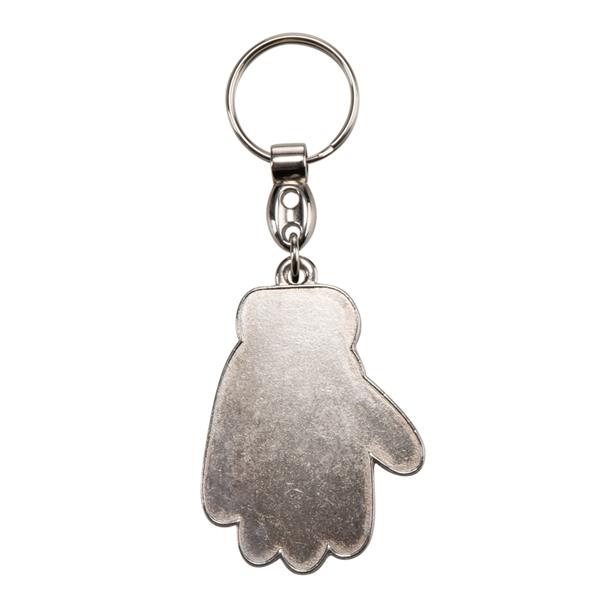 Chaveiro de metal formato luva, parte frontal com detalhes em relevo, verso liso e pintura fosca. Medidas aproximadas para gravação (CxL): 4,5 cm x 2 cm Tamanho total aproximado (CxL): 5,9 cm x 4,1 cm Peso aproximado (g): 20