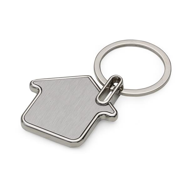 Chaveiro metal formato casa com chapa inox frente e verso lisa. Altura : 4,5 cm Largura : 4,5 cm Medidas aproximadas para gravação (CxL): 3,4 cm x 3,9 cm Peso aproximado (g): 25