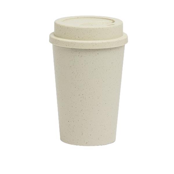 Copo fibra de arroz e polipropileno com capacidade de 460 ml livre de BPA, possui tampa com bocal.